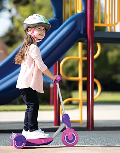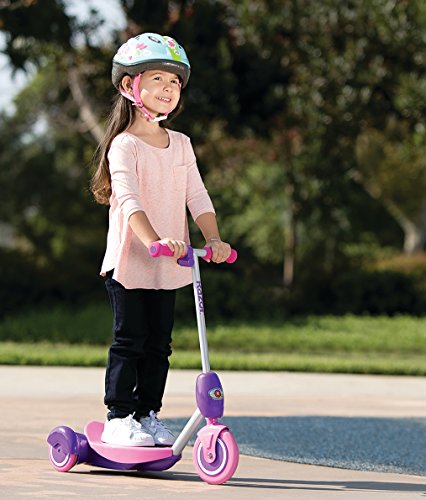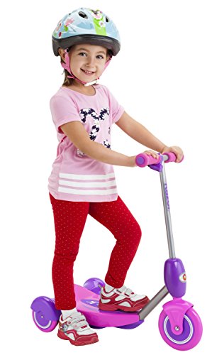 Electric fun for the little ones! it's a revolution in fun for the little ones- an electric scooter built specifically for youngsters still mastering their balance and coordination. The Lil' e provides the extra stability of three wheels and a simplified Push-To-Go, soft start throttle that keeps them in control as they explore the thrills of electric-powered fun. Features safe speeds up to 2 mph (3 km/H) with a "go" button throttle with "soft start" technology (slowly builds to full speed), stops when button is released. Features dual rear wheel drive train, steel frame construction, large deck platform for stability, and foam grips. Comes with a rechargeable 6V sealed lead acid battery with a run time of up to 40 minutes of continuous use. Recommended for ages 3 and older and will support a rider up to 48 pounds. The buyer and rider of Razor Jr. Scooters are responsible for knowing and obeying all local, state and federal regulations regarding the riding and use of all Razor scooters.Feature