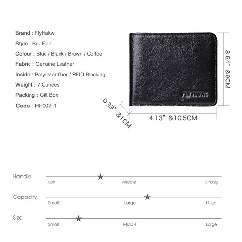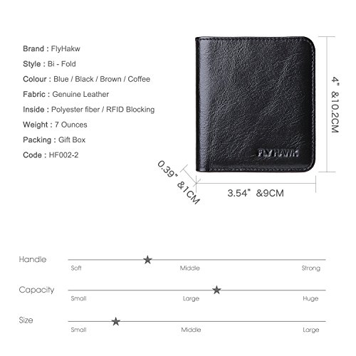 -. Brand : FlyHawk -. Department : mens -. Feature : ★★★★★ITALIAN GENUINE COWHIDE LEATHER: Gift packaging, the best gift of choice.Design is USA,Tough stitching.Hand Made by professional artisans.a beautifully crafted wallet that will only get better with age. / ★★★★★RFID BLOCKING TESTED & APPROVED BY INDEPENDENT LAB TESTS. Our wallets have been tested for 13.56 MHz Frequency in which our credit cards, debit cards, driver license and ID cards operate. PLEASE BE NOTED THAT the signal of some ID badge, access cards and hotel room cards which operates in 80 KHz, can not be blocked by this wallet. / ★★★★★ENHANCES PERSONAL SECURITY: We leverage top RFID technology to block RFID signals used to electronically scan your wallet as someone passes by unnoticed. This keeps your vital information in driver license, debit cards and credit cards from being stolen. / ★★★★★PREMIUM FUNCTIONALITY: Our RFID wallet not only offers security, it's also very functional. It's Mini, you can hardly feel it!Perfect Front Pocket wallet to carry some money ID and a few cards,Top quality!Dimensions = 4" 3.54" 0.39".Double bill compartment, 5 credit card slots, and 1 leather-framed ID window. / ★★★★★SATISFACTION GUARANTEE: We know you'll love our wallet, that's why if you aren't 100% satisfied we will provide you with a refund or a free replacement - which ever you prefer. Buy more for your friends and family. -. ProductGroup : Apparel -. ProductTypeName : LAGE -. Title : FlyHawk RFID Blocking Best Genuine Leather Wallets for Men Biford Mini&Slim Size Wallet
