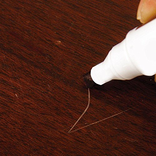 -. Feature : Just draw over scratch, nick or discoloration & watch them disappear permanently / Blend colors to match wood finish perfectly / Instantly cover Blemishes, nicks & scratches on wood, wood-veneer, furniture, trim, cabinets, doors, frames, etc. / Hides wood imperfections, nails, holes and scratches / 6 Large felt-tip markers contain special stain to match 6 wood finishes: cherry, mahogany, walnut, black, maple, and oak