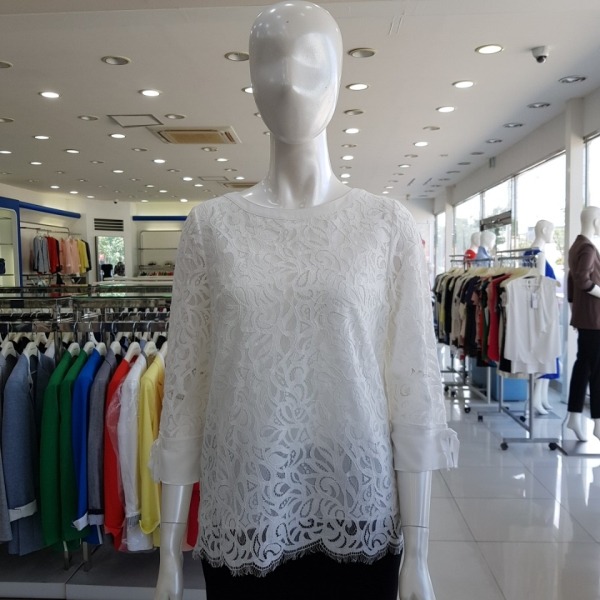 레이스 칠브 리본 디테일 블라우스-JA7F8-WRB100-화이트