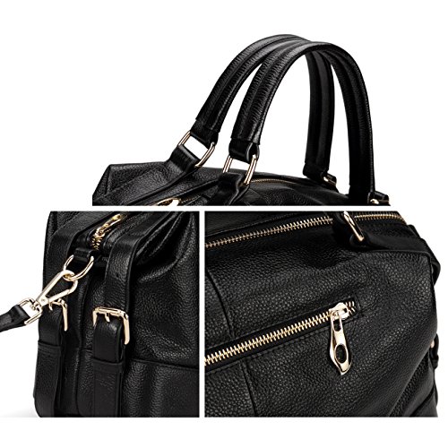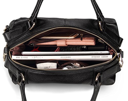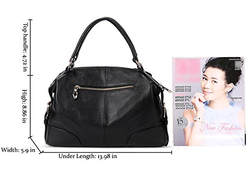 -. Feature : We use the great leather for this bag, cowhide is made of top layer leather, gold hardware, sturdily constructed with detailed streamlined stitching and fully lined with dark brown fabric, durable and smooth, not easy to wear or tear. With double handles are about 4.72" in (long enough to put on shoulder). Handles are durable with excellent bearing capacity. Have removable and adjustable shoulder strap (39.37-45.28 in), you can have 3 carrying options (Single shoulder,cross body and hand carry) / With 2 big inner compartment and 1 interlayer zipper bag, 1 interior zipper slot pocket, 2 open pockets for smartphone, credential and keys/lipsticks, 1 behind zippered pocket. Can carry your iPad 3, IPAD Air, A4 file, wallets, key, umbrella, ID card, your phone, Key pocket, makeups and other daily thing with you. The bottom of bag has four textured metal rivets which is effective for protection against wear. / Features: This tote bag goes well with any outfit. Just image that you are working, shopping, gathering or traveling along this tote handbag around your arms, you must be elegant! Made of soft full grain leather, and handmade. You will feel comfortable to wear it over your shoulder. Simple and Elegant designed, classic style & awesome gift idea, perfectly show your personality. / Product dimensions: (L)13.98" x (W)5.9" x (H)8.86" inches ,and the weight is 2.54 pounds / *Attention:AINIMOER is an US registered trademark,unauthorized sale without permission,we will investigated for legal responsibility.