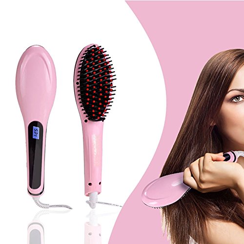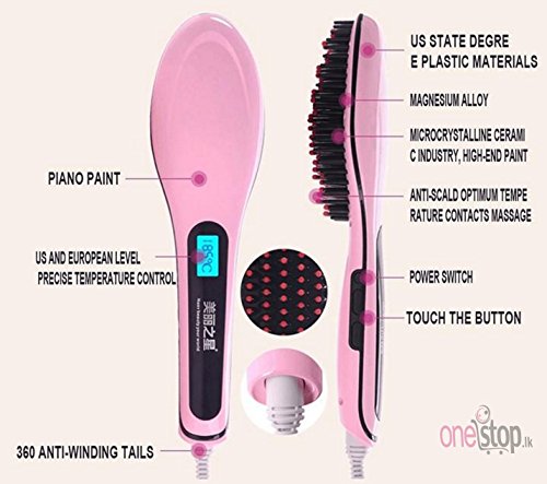 Constant Heat: Max 450℉(230℃), auto keep constant temperature at 365℉(180℃) for all types of hair, customized set 410℉(210℃)for natural texture hair, 450℉(230℃) for thick or wavy hair, effortless and efficient straightening styling. Ceramic Iron Straightener + Detangling Brush + Anion Hair Massager, ANTI SCALD design---worry free from burning your fingers and hands. Anion moisturizing and hydrating care, to do a deep care with oil treatment for the hair with brush Messaging Tips less than 125℉(52℃) anti Scald, Zero damage. Safety plug, auto shut-off protection. Dual voltage operation support: 110V~230V.Instant heat-up and recovery:1 minute heat up to 365℉(180℃), 8 seconds a silky straight hair basic done. Please check if you turn on the red power button on the safety plug, and the power button by the side of the brush. When power is on, the temperature will be displayed on the LED screen. Temperature setting guide: Auto constant temperature at 365℉(180℃) for delicate colored fine hair; Customized set 410℉(210℃) for natural texture hair; Customized set 450℉(230℃) for thick or wavy hair.Feature
