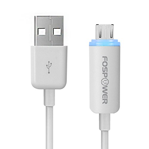 -. Title : FosPower [6 ft] Micro USB Charge & Sync Cable with Blue LED Charge Indicator for Cellphones, Tablets and Portable Electronics