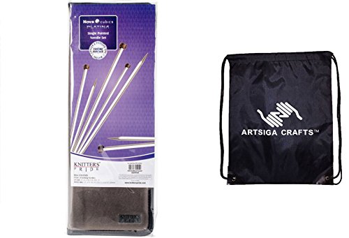Bundle includes 1 Knitter's Pride Nova Cubics Platina 14-inch (35cm) Single Pointed Knitting Needles Set with 1 Artsiga Crafts Project Bag 320455