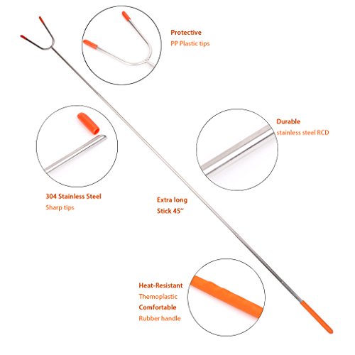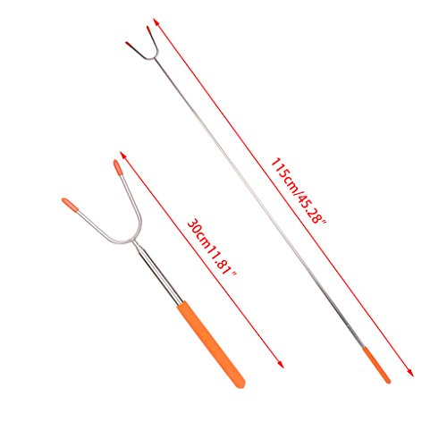 Warm Tips: 1. When using these sticks, please extend it as far as possible from the fire for keeping a safe distance and for the purpose of protecting the cap on the handle from overheat melting . 2. The melting prongs can be adjustable in a slighter degrees, repeated or heavier adjustment may cause broken prongs. 3. Kids better use these under adult supervision, Handle with care.