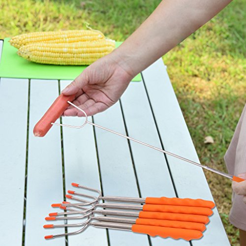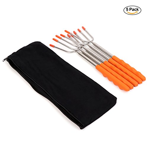 Studio : BYNNIX Publisher : BYNNIX Product Description Description: *Material: 304 Stainless Steel *Handle Material: Rubber *Package Included: 5PCS marshmallow sticks *The comfortable rubber handle with finger indents gives you a firm, steady grip. *These telescoping marshmallow sticks are long enough when extended to be safely away from the fire, and very compact when collapsed and stored in their bag, it is a very SPECIAL GIFT for friends and family. *Retracting design of bbq roasting sticks to 33 inches and comes with a free canvas bag,so you can easly take it with your campfire and camping cooking equipment. it is a very SPECIAL GIFT for friends and family *The unique design of safety roasting sticks allows you to adjust roasting fork length to grill easily. You can spin marshmallow, BBQ and veggies when cooking and giving you optimum control. *Non-sharp points, BPA FREE plastic handle tips, lightweight durable make them perfect for children to join in the fun. *45" Extra Long Extendable Telescoping forks keep you and kids at a safe distance from fire,while roasting marshmallow, smores and hot dogs. Simple feature allows your thumb to rotate marshmallow easily. *Protective rubber tips for prongs, for perfect storage and safe handling around children.