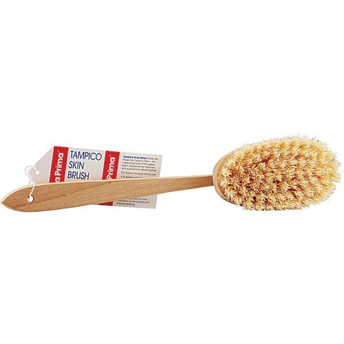 The Yerba Prima Tampico Skin Brush is a wonderful, revitalizing health and beauty aid. Removing the top layer of dead skin and stimulating the circulation of blood feeding the skin are essential for maintaining youthful, glowing and supple skin. Skin Brushing has been used throughout the world for centuries, and is making its way back into popularity. Dry skin brushing is one of the best ways to cleanse the skin without removing the protective mantle of acid and oils. It gently and effectively removes the top layer of dead skin cells with its build-up of dirt and acid, and deeply cleanses the pores. Skin brushing is one of the most powerful ways to cleanse the lymphatic system. Waste material is carried away from the cells by the blood and the lymph. Skin brushing stimulates the release of this material from the cells near the surface of the body. Eventually, most of the toxins along with their carrier cells, primarily lymphocytes, find their way to the colon for elimination. Skin brushing is also used by beauty salons as part of a program for removing cellulite. Skin brushing is most effective with an all-natural vegetable fiber brush, such as the Tampico Skin Brush. Make sure the brush isn t made of synthetic fiber since this can irritate the skin. A long handle is also helpful for reaching the back and entire body.Feature