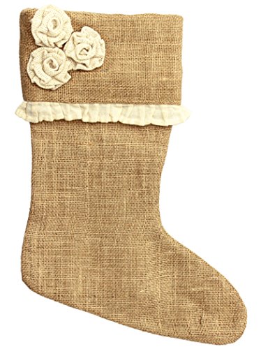 Country House Collection Primitive 15" Mini Rosette Ruffle Burlap Christmas Stocking
