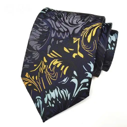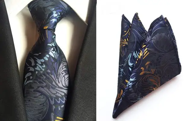 높은 품질의 넥타이 세트 페이즐리 네이비 블루 노란색 회색 실크 남성 넥타이 자카드 짠 넥타이 Gravata 넥타이 포켓 스퀘어 정장 세트