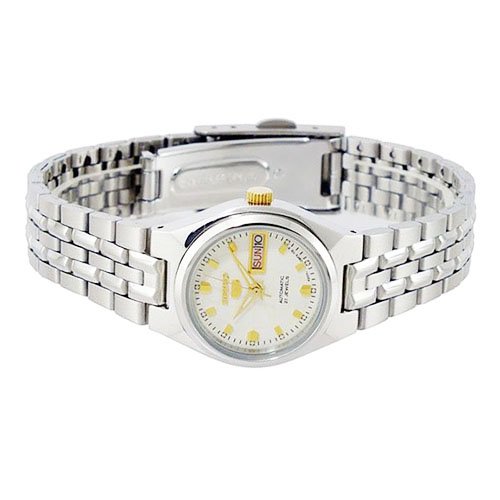 -. Title : Seiko 5 Stainless Steel Case and Bracelet White DIal Day and Date