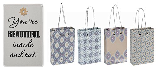 "You're Beautiful Inside And Out" Mini Message Plaque and Beautiful Thoughts Mini Gift Bag Set