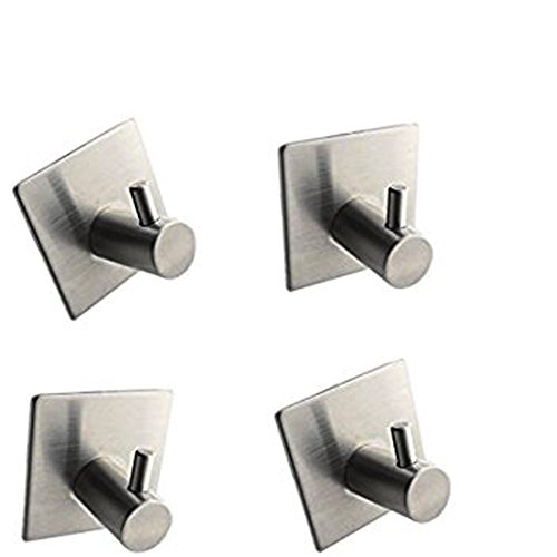 Adhesive Towel Hook Self Adhesive Hook, Towel Hooks for Bathrooms 3m hooks SUS 304 Stainless Steel Brushed Nickel, DIY No Drill No Screw Adhesive Hook Wall Mount for Bathroom and Lavatory (4 Pack)