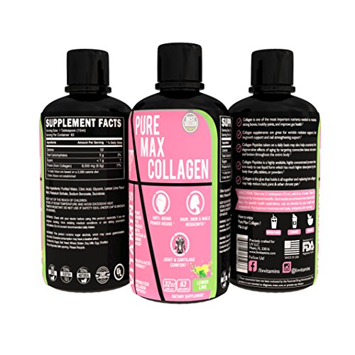 -. Title : LIV Pure Max Liquid Collagen, 32 fl.oz, Lemon Lime, 63 servings, Certified Grass-Fed Collagen Protein Hydrolyzed, Made in USA