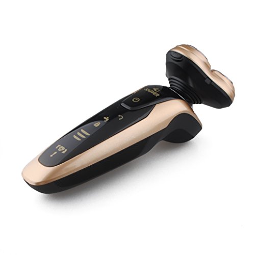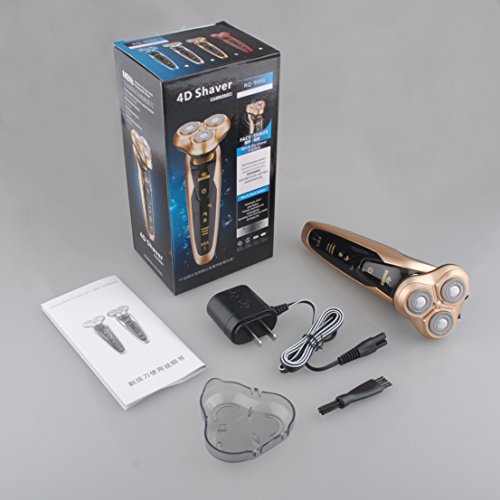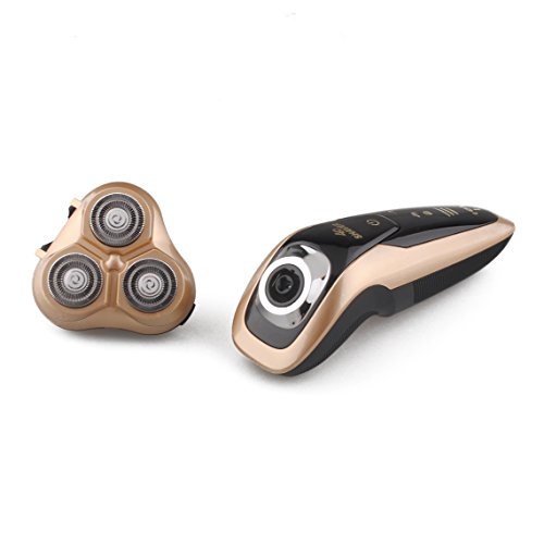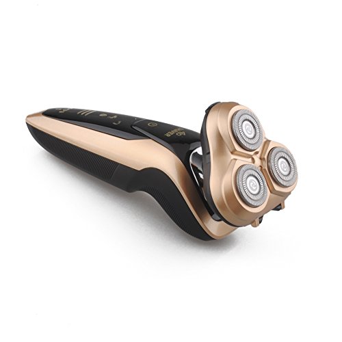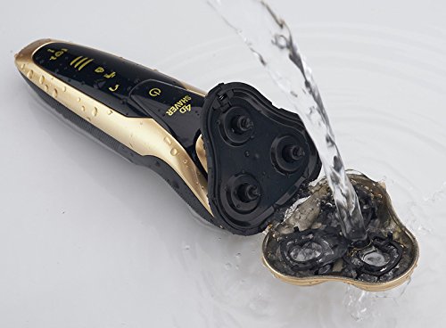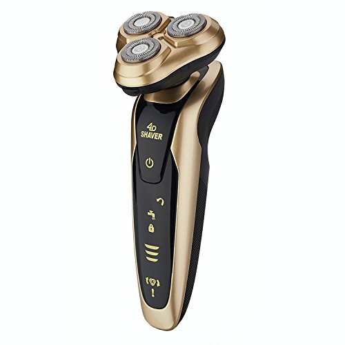 Men's Waterproof Electric Razor, Washable IPX7 4D Wet and Dry Razor Triple Rotary Shaver with Smart Touch Floating Heads (Gold)