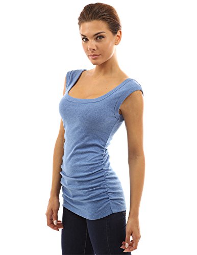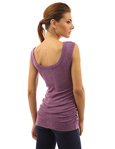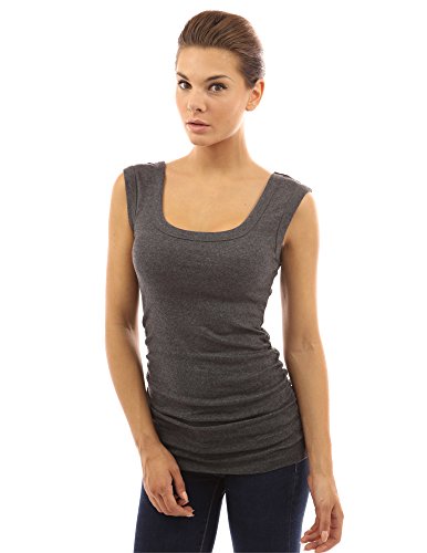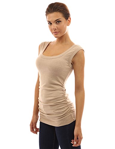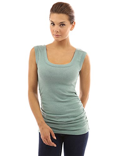 Cotton Blend Textured Scoop Neck Sleeveless Ruched Sides Tank Top. Model in pictures is 5 feet 8 inches (173cm) tall.