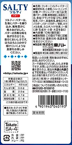 原材料:小麦粉、ショートニング、砂糖、マーガリン、バター加工品(発酵バター、砂糖、植物油脂)、油脂加工品、食塩(ゲランドの塩13%)、卵黄粉末、バター、脱脂粉乳、酵母エキスパウダー、バターパウダー/香料、カラメル色素、カロチノイド色素、(一部に卵・乳成分・小麦・大豆を含む)