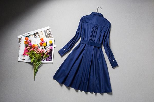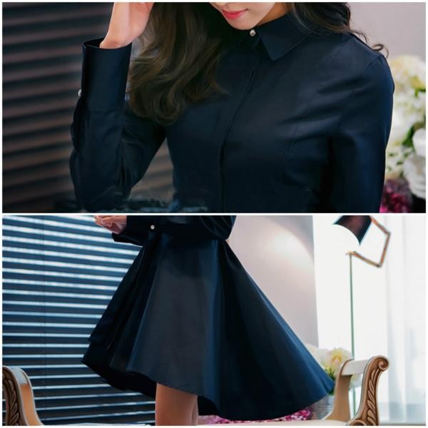 パフスリーブ リボンベルテッド フレア シャツワンピース
