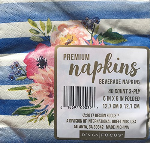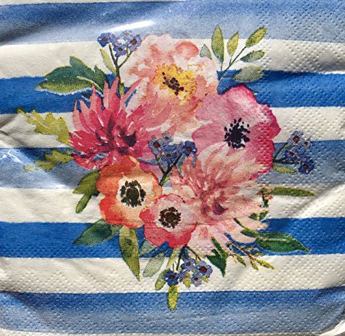 Design Focus Cocktail Beverage Paper Napkins ~ Pink Bouquet with Blue Stripes