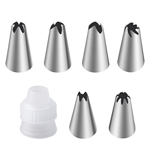PACKAGE INCLUDING: 6 pieces icing tips and 1 icing coupler.