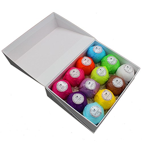 - ♥ 12 Lush Handmade Bath Bombs Gift Set - 12 unique bath fizzies (2.8 oz, Size close to tennis ball) in a gift box instead of the standard 6 and two times the aroma compared to others. Concomitant use with Spa Bath Pillow will better the effect.