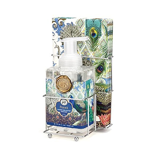 Michel Design Works Scented Foaming Hand Soap and Napkin Caddy Set, Peacock