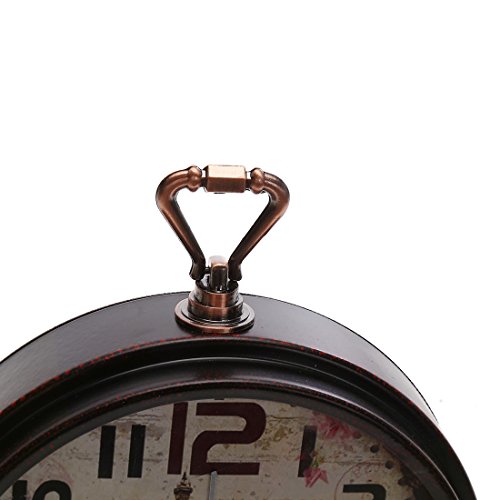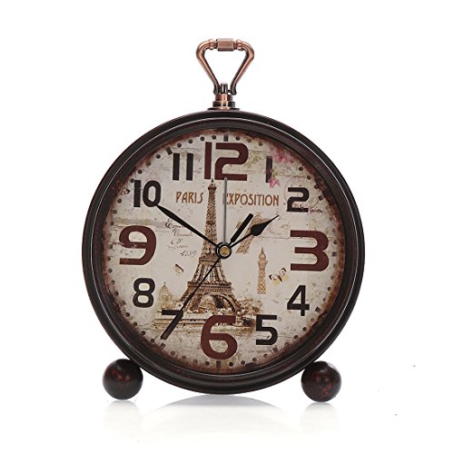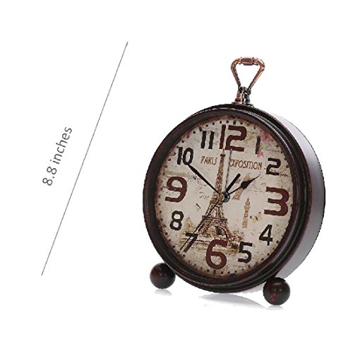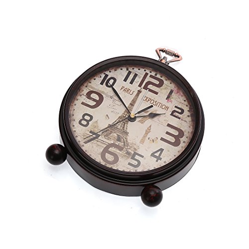 Material: Metal and Glass Item Height: 8.8 inches Item Width: 7 inches Item Thickness: 1.8 inches Net Weight: 460 grams Power Source: 1 x AA battery(Not Included) Why to buy? This is a silent clock,non-ticking,perfect for bed side and office desk. Alarm is super loud for people who has waking up problem.Wishing for one more minute sleep?It looks this clock does not agree. Thoughtful design for both desk and wall hanging available We promise what you see is what you get. 1. High quality quantz guarantees time accuracy. 2. We use great and evironmental friendly materials to ensure a pleasant customer experience. 3. Hassle free on maintainance. What we do for you? 1. Strong package guarantees our clock safe during shipment. 2. We inspect every clock before shipment,abandon imperfect clock. 3. Quality guarantee. We promise to replace defective product for you within 2 months. 0