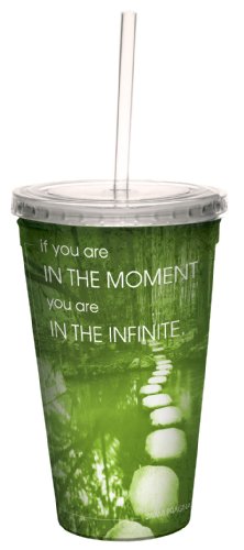 Tree-Free Greetings 80596 Zen Inspired Quote In The Moment Artful Traveler Double-Walled Acrylic Cool Cup with Reusable Straw, 16-Ounce