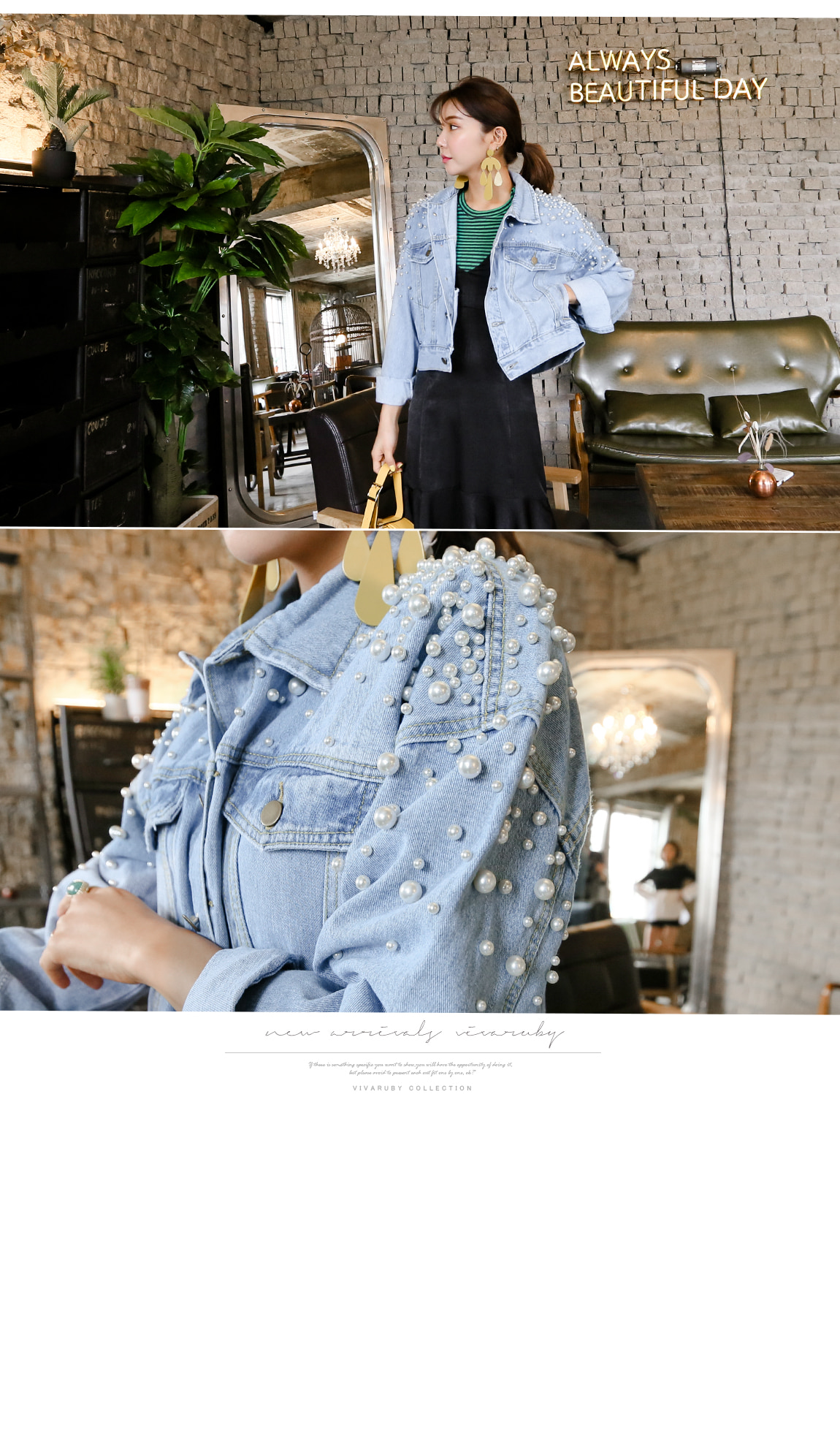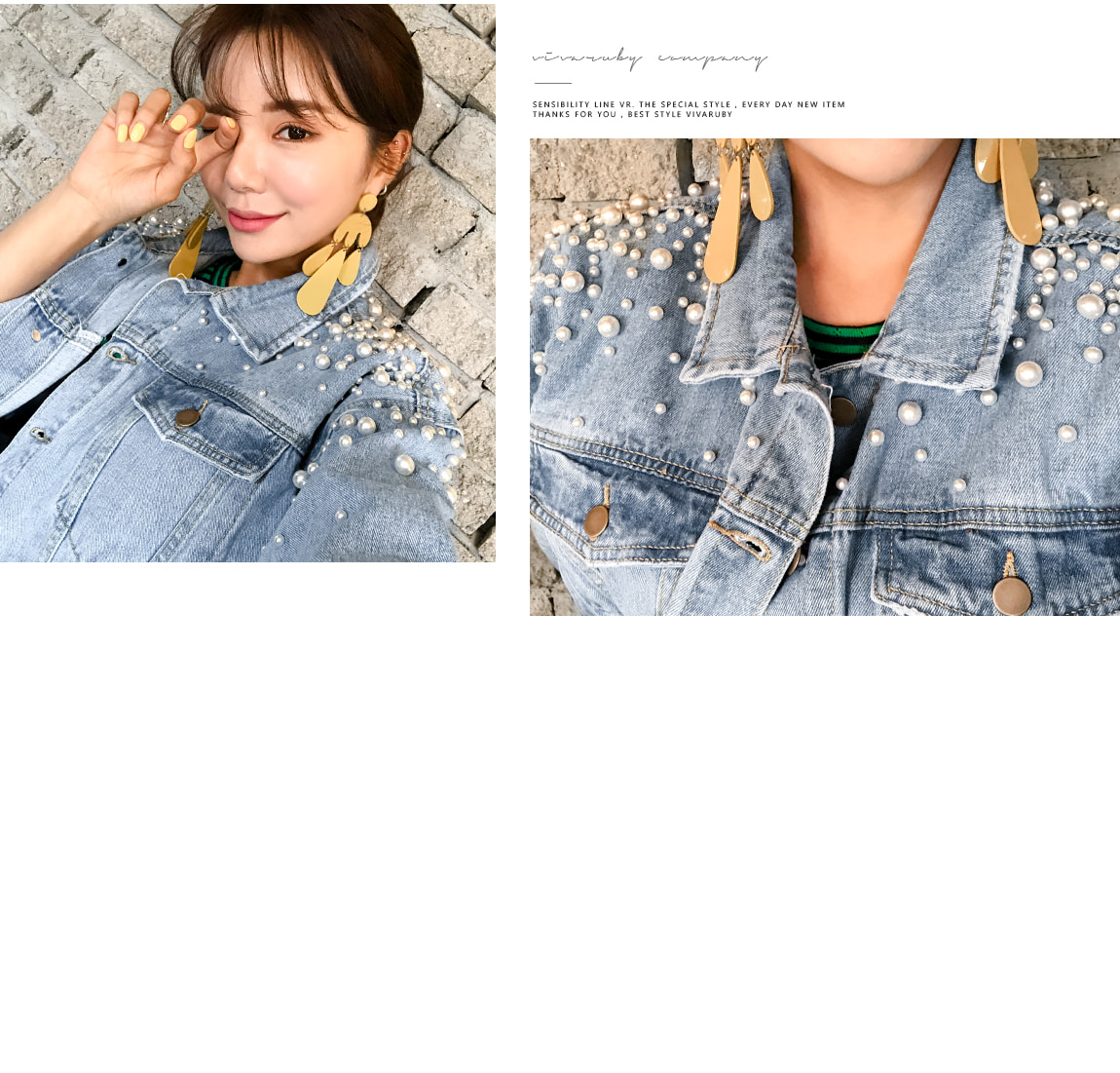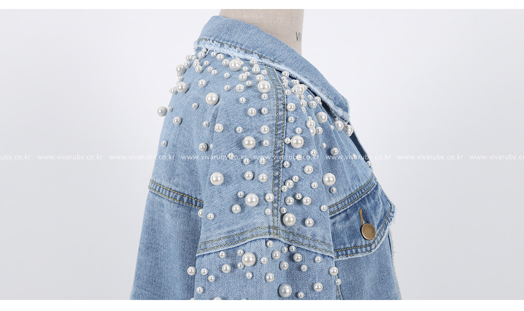 숄더의 진주 디테일로 유니크한 포인트를 주었답니다