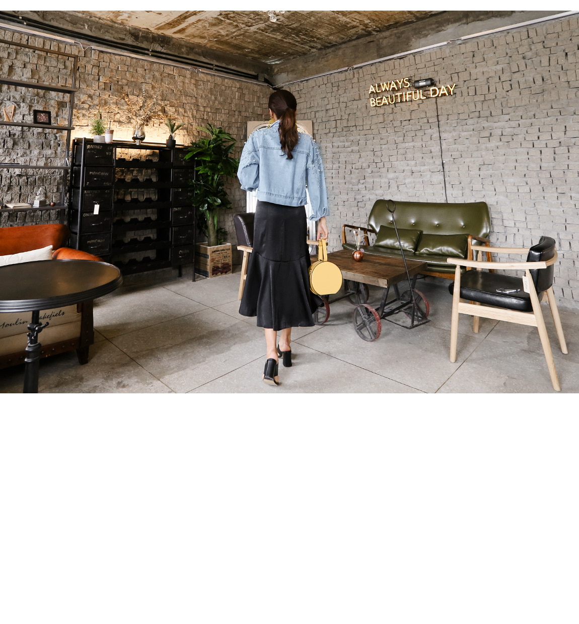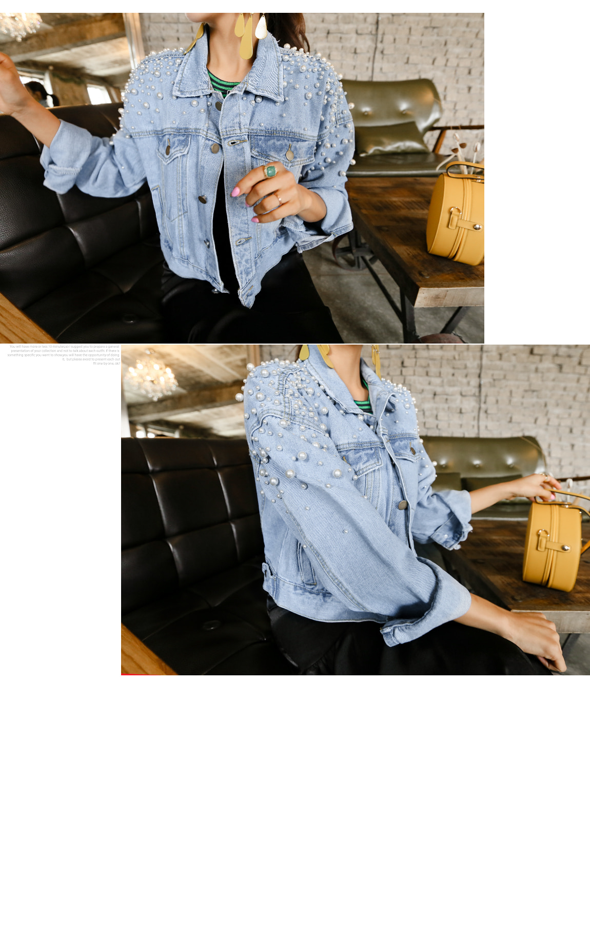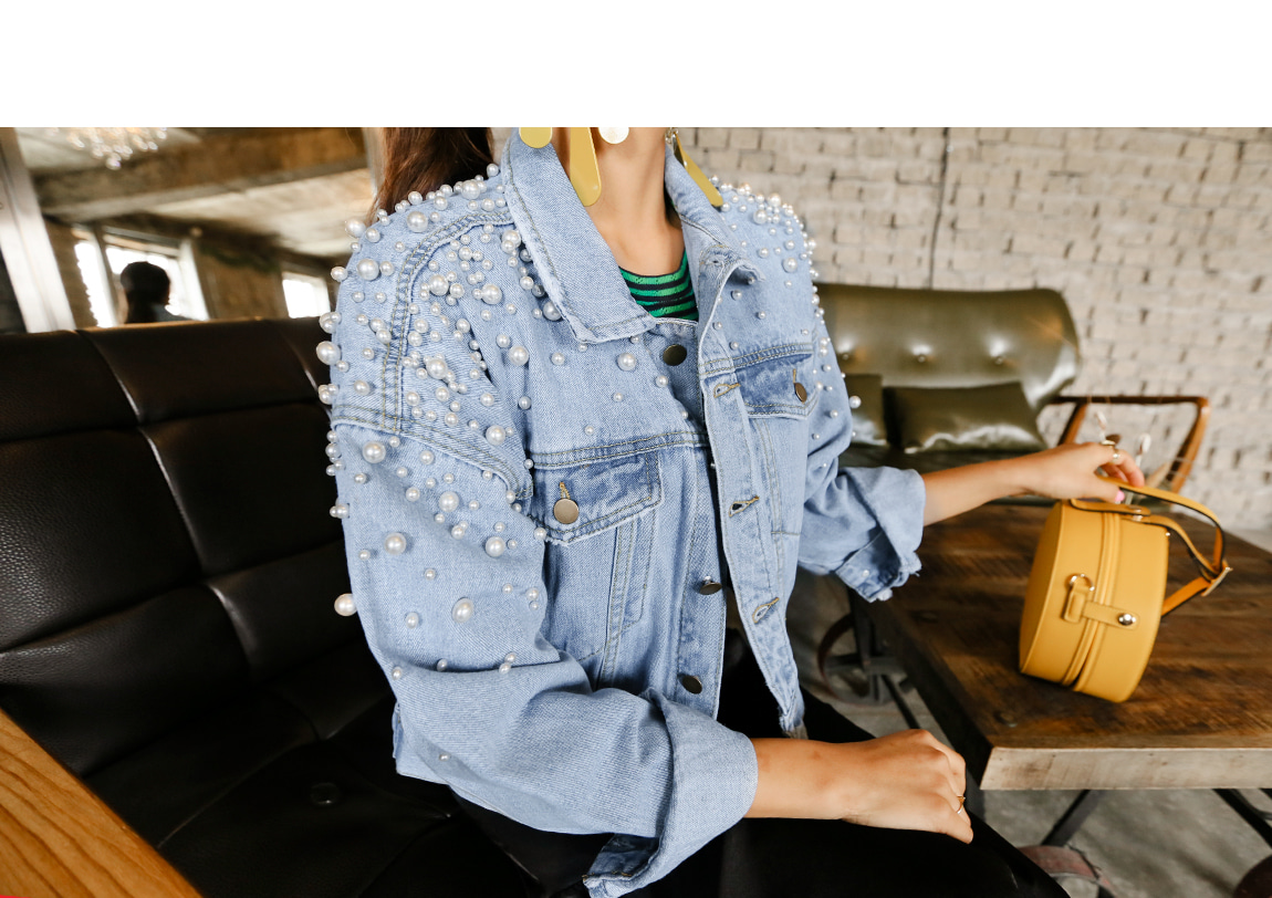 숄더의 진주 디테일로 유니크한 포인트를 주었답니다