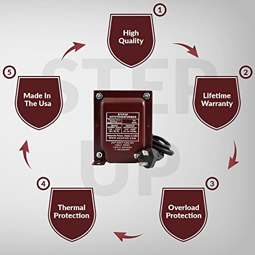 Our AU-2000 model is a 2000-watt, step up model that converts 110-120 volts to 220-240 volts. ACUPWR provides a lifetime warranty with up to $10,000 in damage coverage for this product.