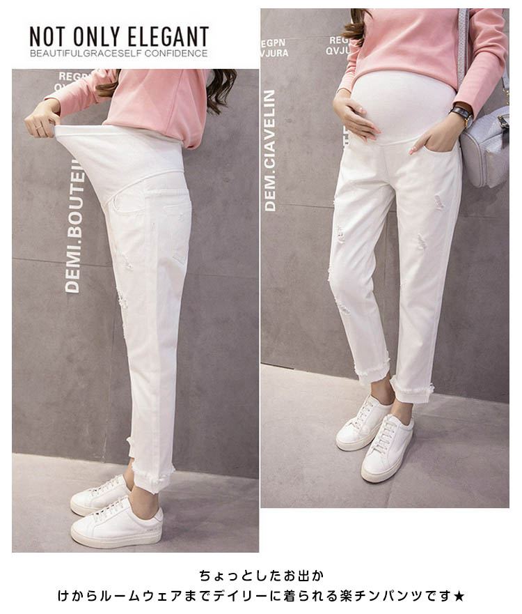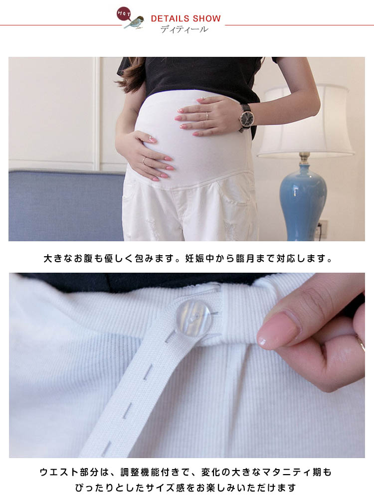 | 大人のこなれ感たっぷりスキニーデニムの登場です★ストレッチの効いたやわらかな素材ではき心地も抜群★体型が気になるマタニティライフに大活躍間違いなし★ ちょっとしたお出かけからルームウェアまでデイリーに着られる楽チンパンツです★ | |