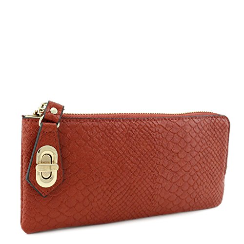 | (Alyssa)/Accessories/Wallets, Money Key Organizers/DIRECT FROM USA/Snakeskin Slim Zip Around Wallet with Turnlock |