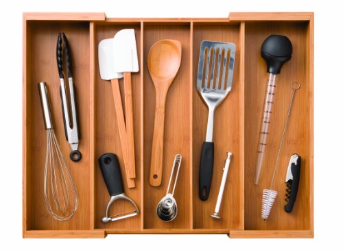 Seville Classics Bamboo Expandable 5 Large Compartment, 2 Adjustable, Cutlery Drawer Tray Organizer