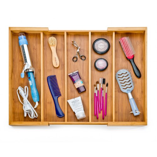 - Customizable tray expands from 13" to 23" wide. Unit measures 18" long and 2.5" high. Keeps your drawers organized.