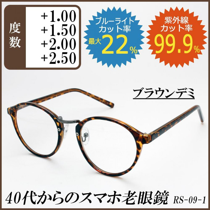 | スマホ老眼の気になる方、老眼鏡デビューの40代の方にピッタリ♪流行のクラシックスタイルのフレームで、抵抗感なく気軽に掛けていただけます。メガネの産地「福井」より企画発信し、海外の協力工場でしっかり生産管理された商品です。ビジネスからカジュアルスタイルまで、どんなシーンにも活躍します。また、ブルーライト・紫外線もカットされるので、屋内・屋外どこでも活躍します。 |