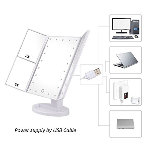 - ❉[2 Power supply]❉- This makeup mirror runs by using USB cable (provided) or on 4 pcs AAA batteries(not included).*NOTE: This mirror can't store power by itself and pls DON'T power it by USB charging and battery at the same time.