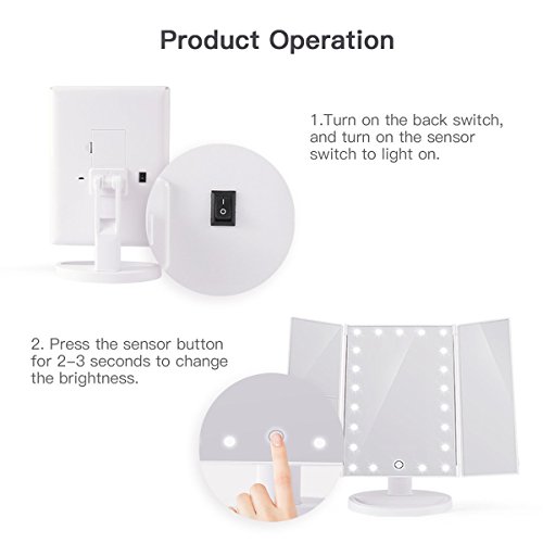 - ❉[21 pcs LEDs Light + Controllable Brightness]❉- Our Vanity mirror is built-in 21 pieces adjustable Leds,you could feel free to makeup in the dark or poorly lit areas. Touch sensor switch for several seconds to controllable LED lights brightness, release your finger till the brightness of the light is right for you.