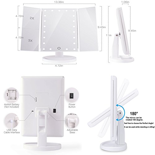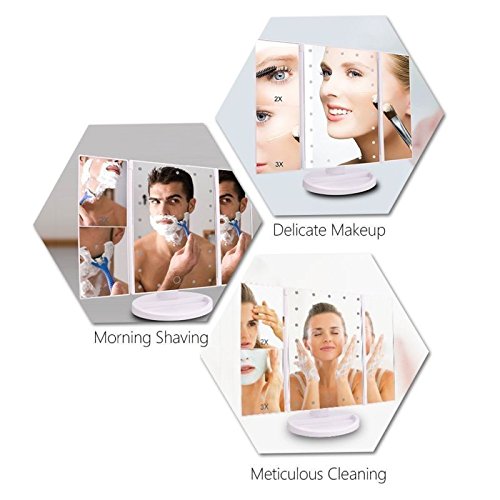 - ❉[3X/2X/1X Magnification function]❉- This different magnifications mirrors with a wide-angle viewing, it works well for applying make-up and cleaning up eyebrows, and you have 3 different screens to choose from while doing make up!