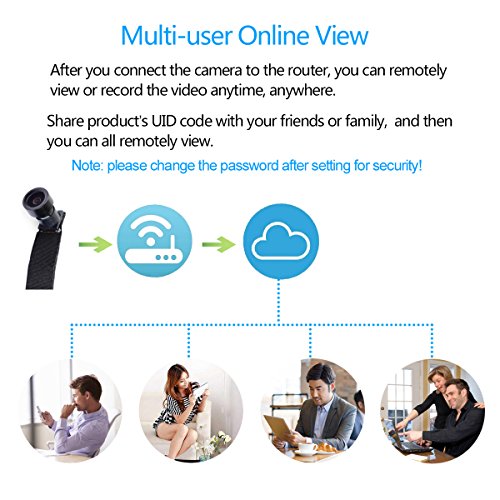 -. Feature : WIFI DIY CAMERA: A good gadget that you can DIY with many things as your imagination. Mini size and light weight, easy to place and carry, almost fit for all kinds of portable tools. You can make your own unique camera with it. How amazing! / BIG WIDE ANGLE: It's the Only one wifi Camera Module which has 170° wide view angle on the market. Catch more content and get more than you want. With it, you can remote monitor your home and office. But please don't use it any illegal places or situations! / MOTION DETECTION ALARM: When motion is detected, it will automatically capture, video and send an alert with 3 photos of the event to your phone (need to insert a card and set first). / HIGH QUALITY VIDEO: Support Max 1920x1080P Video Resolution, meet your desire for clear and vivid image. You can also select from 1080P/720p/640P/460P according to the network connection quality. / LARGE CAPACITY BATTERY: Built-in high capacity rechargeable battery, record approx 4-5 hours. Support recording while charging, and also you can connect the camera to either a power bank or an outlet so you can record nonstop with no interruptions.