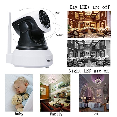 Yafeite IP Camera WIFI Camera 720P HD Used for baby/child/pet/nanny monitor Pan/Tilt Two-Way Audio and Night Vision 380° Black & White