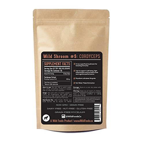 -. Feature : UNIQUE AND RARE PROPERTIES: Cordyceps Mushrooms are equipped with unique constituents that make this powder exceptionally powerful at boosting athletic performance and libido. Cordyceps enhance vitality and vigor and can increase energy, boost health, detox the body, increase oxygen uptake, and improve immune function. / POTENT ADAPTOGEN HERB: Favored as an adaptogenic herb used in modern society. Adaptogens are substances that promote bodily resistance to stressors and increase recovery time to life's natural challenges. Adaptogens support the body to positively respond to depleted energy levels, hormonal imbalances, increased inflammation and similar stresses. / QUALITY PROCESS: Wild Cordyceps is Triple Water-Extracted, Non-GMO, Grain-Free (NO FILLER), Caffeine-Free, Paleo Friendly, Vegan, 100% Natural, Small-Batch cultivated Sinensis on Mycelium by small multigenerational farmers. / MULTITUDE OF USES: Mushroom powder is extremely versatile and can be added to coffee, tea, smoothies, shakes, soups, raw chocolate, and more. Add 2g (½ tsp) to each serving and enjoy! / Use code WILDSAVE at checkout when you Buy 2, 3, 4, 5, 6, 7 or more products and receive a larger discount the more you stock up! Mix and match any Wild Foods products. 100% MONEY-BACK GUARANTEE in the unlikely event you are not fully satisfied...simply return your purchase for a full refund.