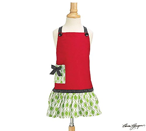 Christmas Holiday Childs Red Festive Apron with Black Ribbon Ties and White Polka Dots