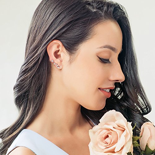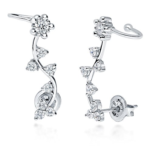 These flower ear cuffs flaunt spring flair in a delicately beautiful way. Made of rhodium plated fine 925 sterling silver. Set with 0.76 carat round cut clear cubic zirconia in prong and 3-prong setting. Earrings measure 0.85 inch in length, 0.25 inch in width. Posts with butterfly backs. Imported.