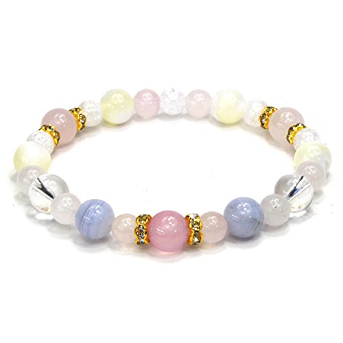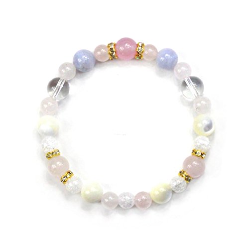 ◆열을 더하는 것에 색이 바꾸는 성질을 가지는 미스테리인 컬러 체인지 핑크 카루《세도니》를 주요하석에 색취 선명한 천연석 파워 스톤에디자인된 콤비네이션 팔찌입니다. 블루나 핑크의 컬러풀한 색조와 크랙 쿼츠의 키라《메키》가 멋지게 융합한 패셔너블 파워 스톤 팔찌입니다.