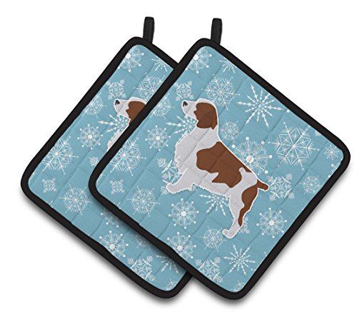 Caroline's Treasures Winter Snowflake Welsh Springer Spaniel Pair of Pot Holders BB3500PTHD, 7.5HX7.5W, Multicolor