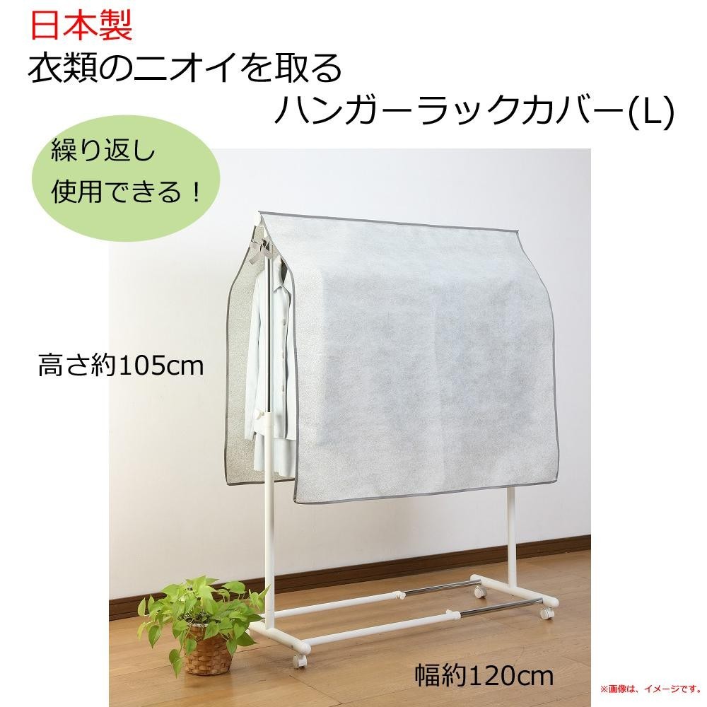 | 旭化成の活性炭入りポリエステル不織布「セミア(R)」がタバコ臭の主成分であるピリジン、酢酸、アセトアルデヒドや汗臭の成分であるアンモニアを2時間で約95%以上除去して強力消臭するので汗臭やタバコ臭などが付着した衣類に掛けておくだけで、ホコリ除け・目隠し・消臭が同時にできます。ワイドサイズのハンガーラックカバーに適応したLサイズです。 |