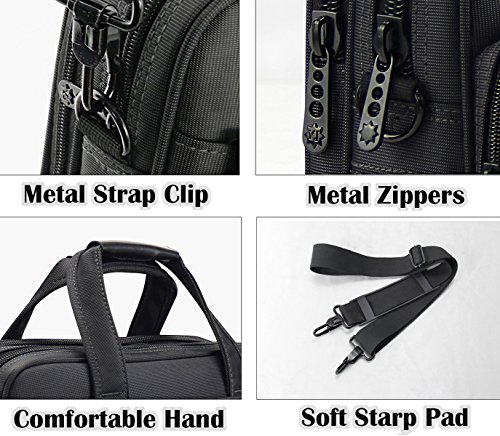 -. Feature : MULTIFUNCTIONAL COMPARTMENT - Including 1* 15.6 inch laptop main compartment, 1* organizer pocket, 1* back zipper pocket, 2* front pockets with zippers, 1* inner zipper pocket, 2* inner wall pockets, 2* inner pen sleeves can hold your credit cards, ID card , pen, wallet, keys and other samll things. / ZIPPER EXPANDABLE LAYER ( 4 to 5 inches ) - The expansion zipper makes the computer bag more flexible, Provides extra space for necessities accessories,offering added convenience. / MATERIAL - Made of high quality water-resistant Nylon Fabric to provide maximum strength, durability, and longevity. Excellent keeping inside items dry against from splashing,even on rainy day. / COMFORTABLE - A reinforced handle is featured to let you transport this Laptop bag effortlessly. Additionally, this bag also has a wide adjustable shoulder strap which helps eliminate shoulder fatigue. / VERSATILITY - Can be used as a computer bag, briefcase, office bag, school bag, business bag, travel bag.