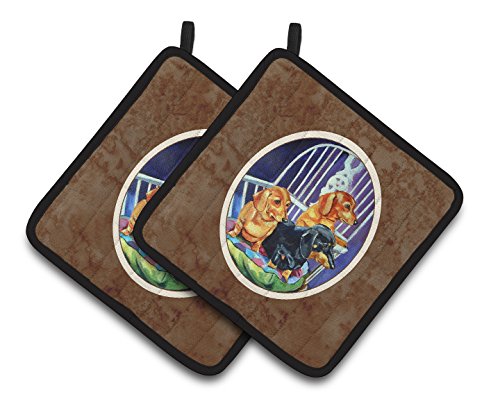 Caroline's Treasures Dachshund Two Red & A black & Tan Pair of Pot Holders 7025PTHD, 7.5HX7.5W, Multicolor