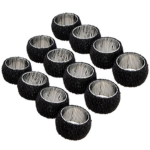 Includes a total of twelve black beaded napkin rings