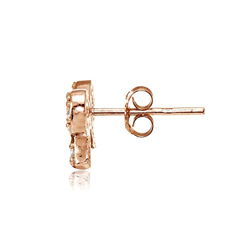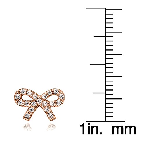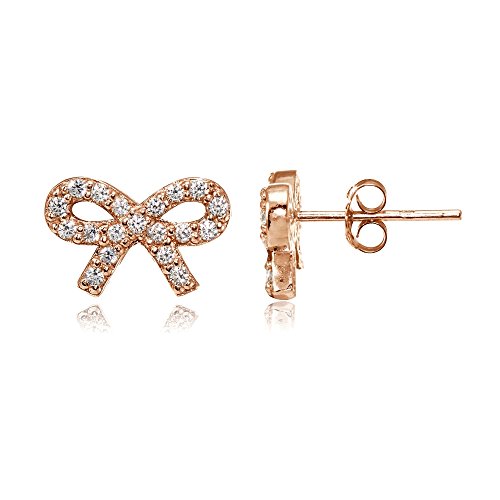 Make a statement with these clever evil eye stud earrings. Sparkling cubic zirconia stones are set on a polished rose gold flashed sterling silver frame forming a precious bow design . It secures to the ear with post with friction backs.